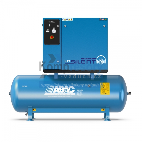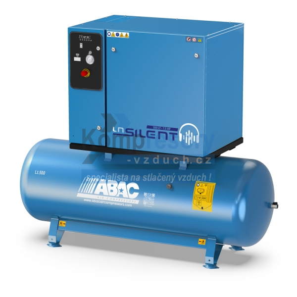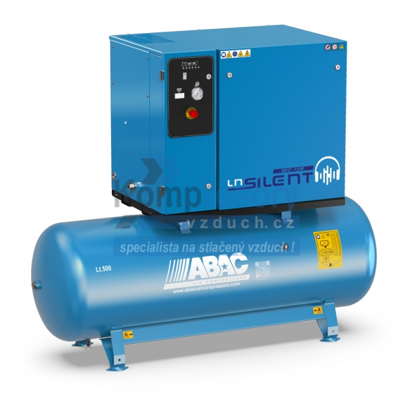 Dvoustupňový kompresor z řady Silent LN v olejem mazaném provedení se spojením elektromotoru s nízkootáčkovou kompresorovou jednotkou pomocí klínových řemenů. Perfektní odhlučnění pomocí kovového krytu s pěnovými panely a se zajištěním optimální provozní teploty stroje pomocí ventilátoru a vhodného vedení chladicího vzduchu. Kompresor dále disponuje následujícími benefity a standardním vybavením: