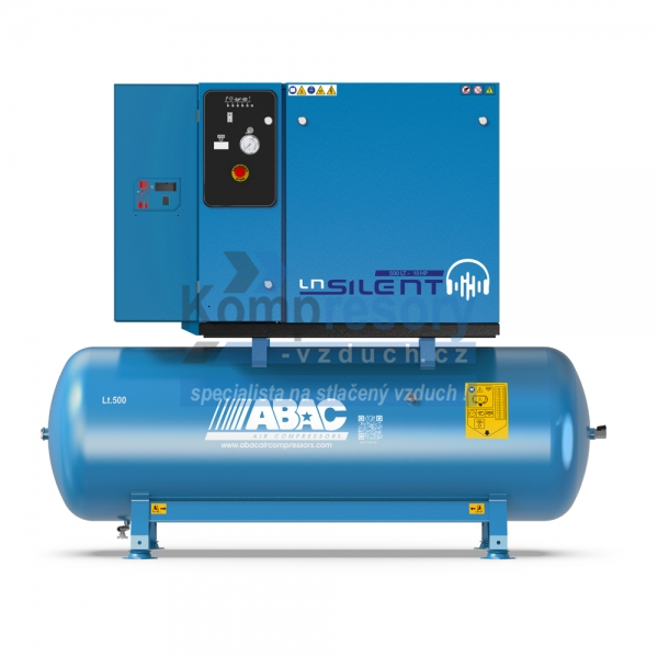 Dvoustupňový kompresor z řady Silent LN v olejem mazaném provedení se spojením elektromotoru s nízkootáčkovou kompresorovou jednotkou pomocí klínových řemenů. Perfektní odhlučnění pomocí kovového krytu s pěnovými panely a se zajištěním optimální provozní teploty stroje pomocí ventilátoru a vhodného vedení chladicího vzduchu. Stroj je vybaven ležatým vzdušníkem a kondenzační sušičkou pro odstranění vlhkosti ze stlačeného vzduchu. Kompresor dále disponuje následujícími benefity a standardním vybavením: