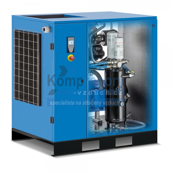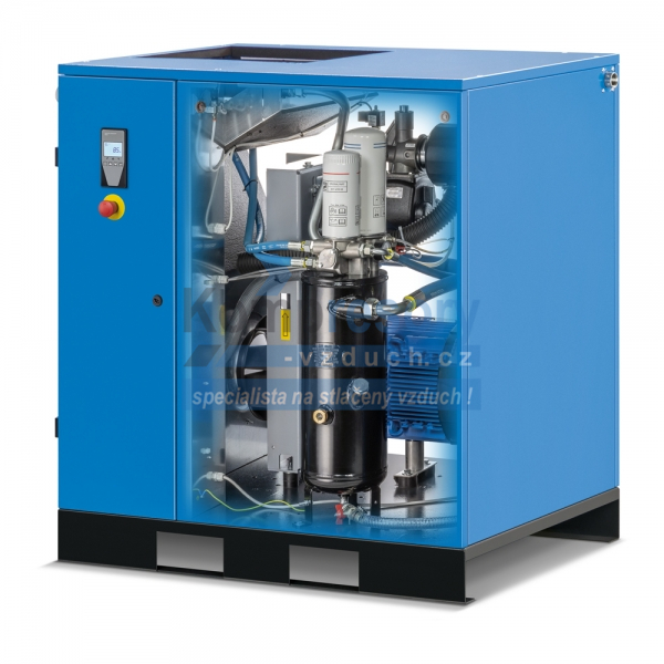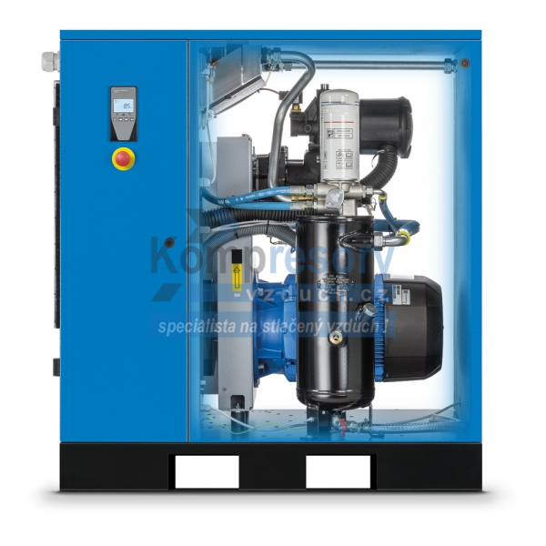 Samostatný šroubový kompresor s převodem pomocí klínových řemenů. Model s příkonem 18,5 kW a vysoce výkonným šroubovým blokem S67 nabízí výkon 2 590 l/min a následující standardní vybavení: